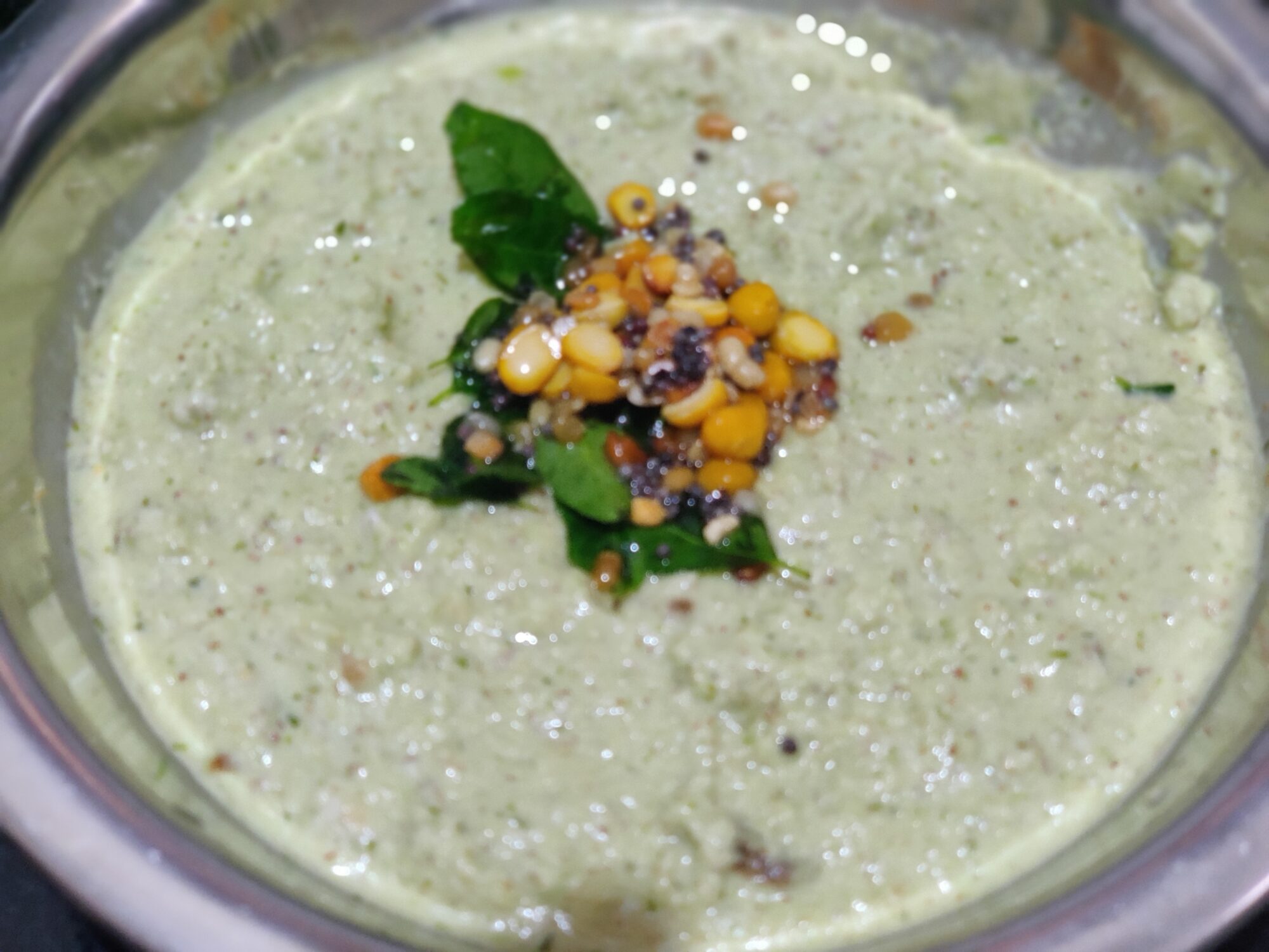 Spicy coconut chutney for dosa, idly. Green coconut chutney, typical south Indian tiffin side dish.
