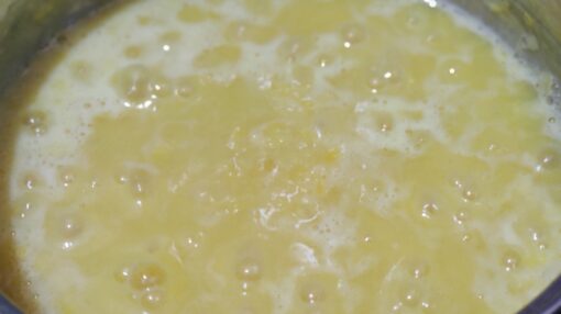 Add 1 cup of jaggery (the sweetness of the jaggery varies, so add the jaggery cautiously), cook till the jaggery is melted and mixed. This will take about 5mins.